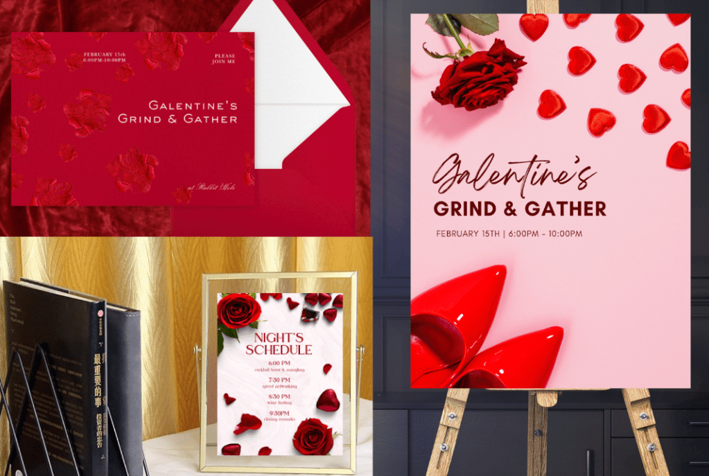 With all of these factors in mind, I came up with the name Galentine’s Grind & Gather. With a theme and a name, I can move on to planning the vision which includes decorations, stationary, signature drinks, food options, venue, and programming.