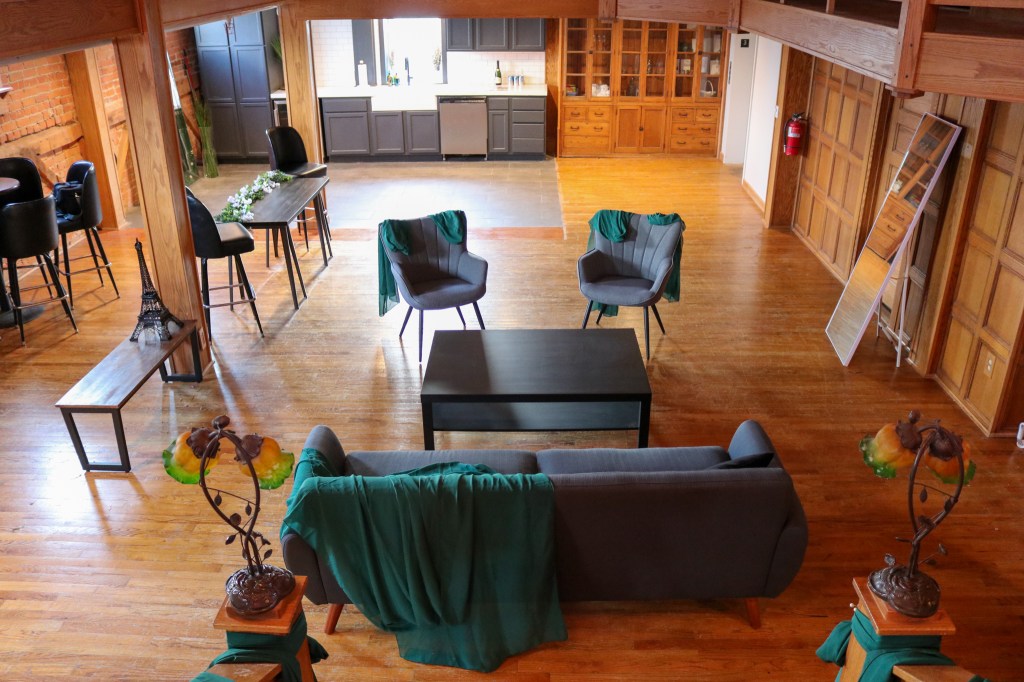 The mother-to-be rented out our lovely Saloon Suite located at the top of our building. The space is adorable with wood floors and antique wood cabinets lining the walls. The new kitchenette, couches, lounge chairs, and coffee tables make the space feel comfortable and welcoming. The high ceiling and abundant natural light balance the cozy furniture, giving the space a beautiful bright and airy feeling. All in all, it was the perfect spot for her gathering of ~25 guests.