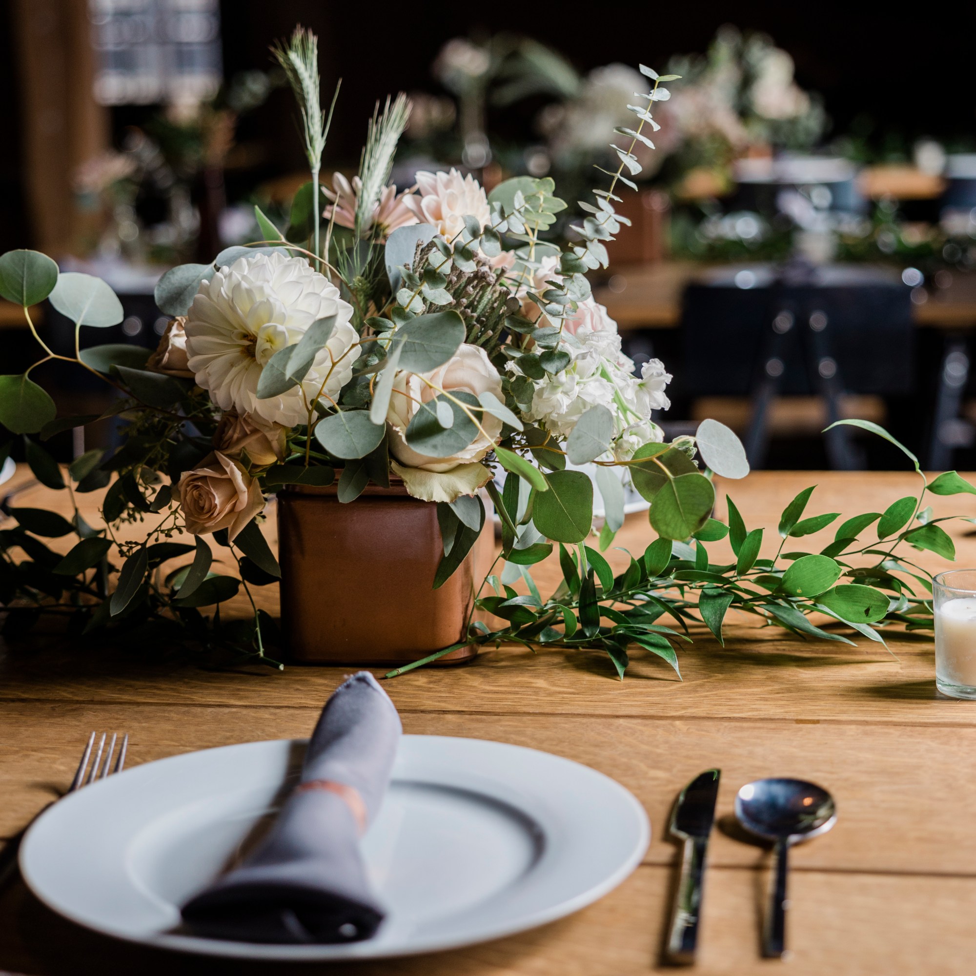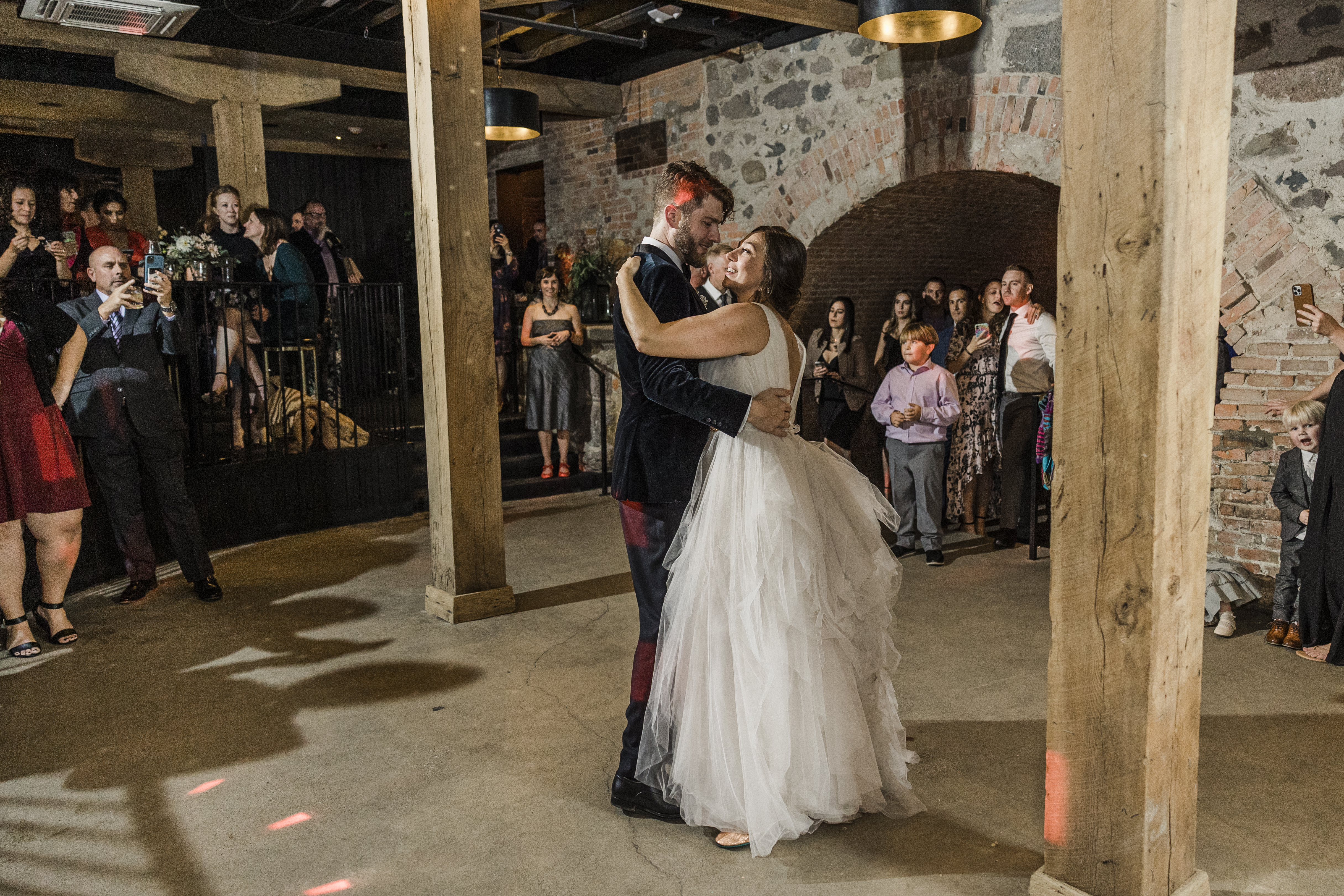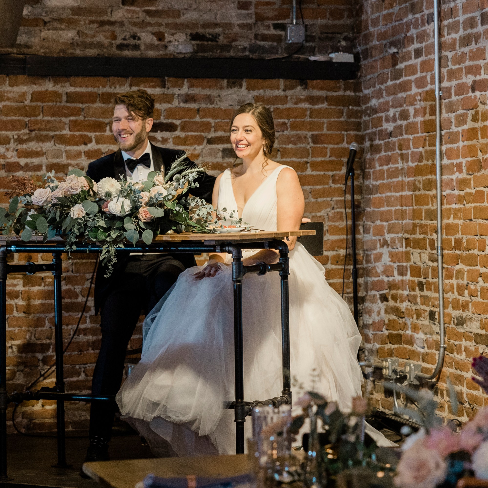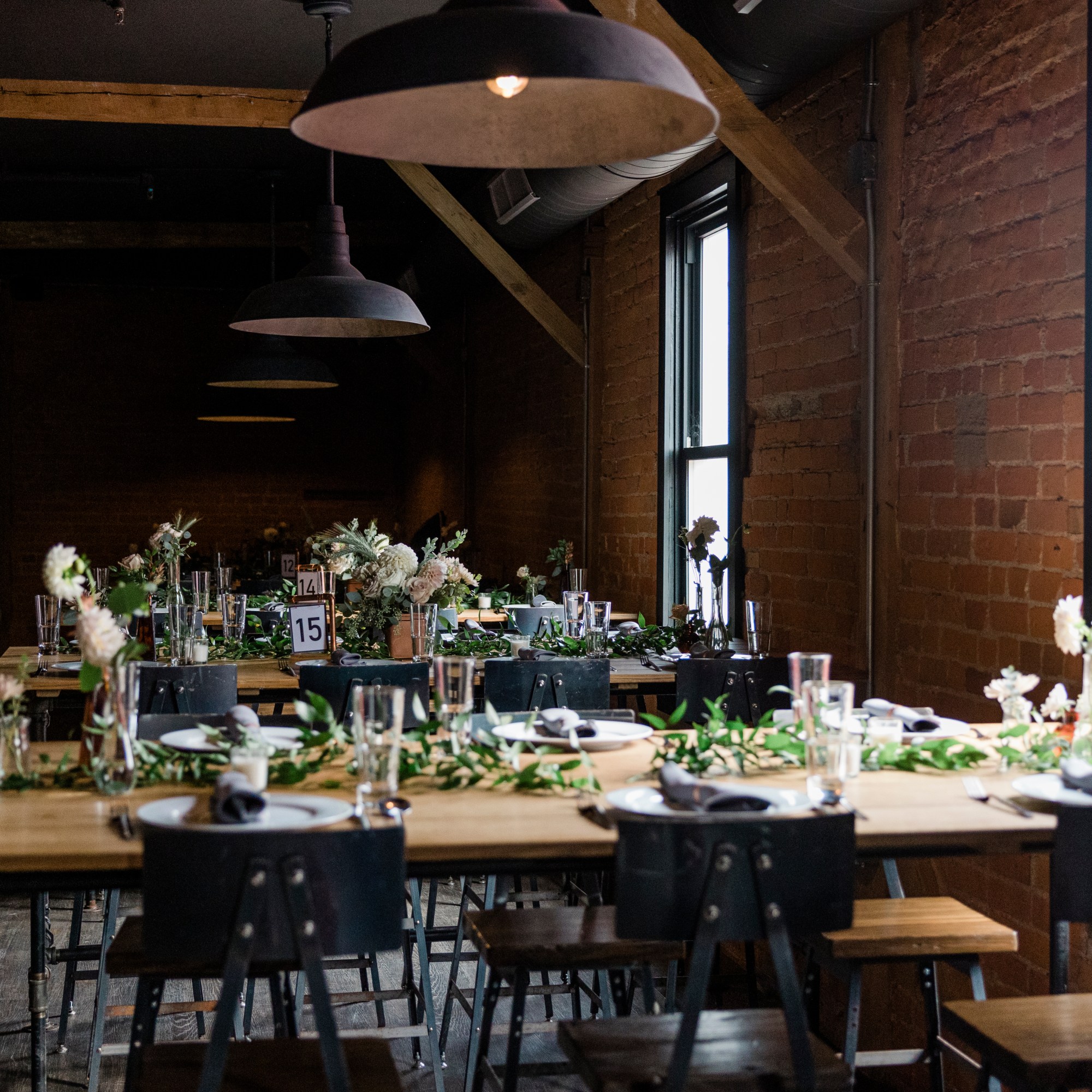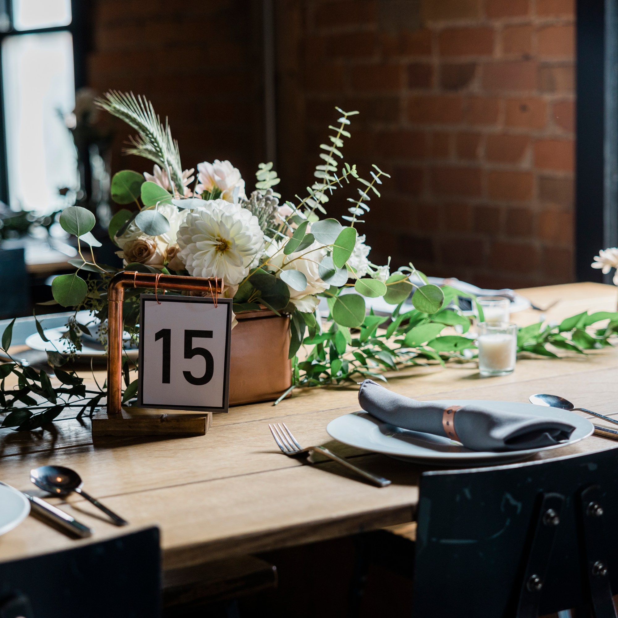 The reception in the Circ bar was a sight to behold, with decorations perfectly matching the venue’s aesthetic. Copper table rings, copper pipe table numbers, farmhouse tables, and the venue’s hightops created a charming atmosphere.