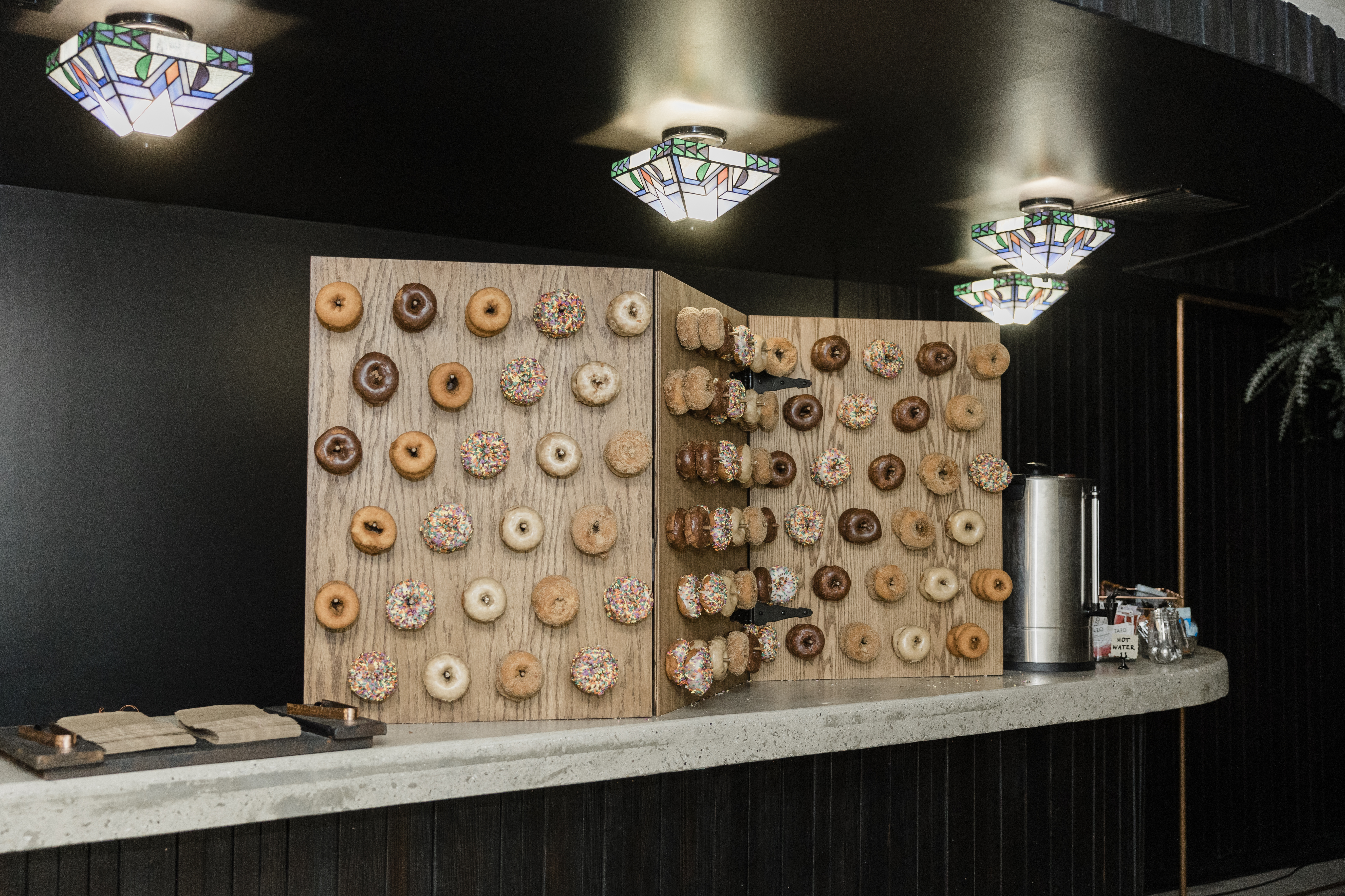 The celebration concluded in Root with dancing (including the couple’s first dance!), desserts in the form of a spectacular donut display from Washtenaw Dairy on the dry bar, alongside favors from The Brinery and Cherry Republic.