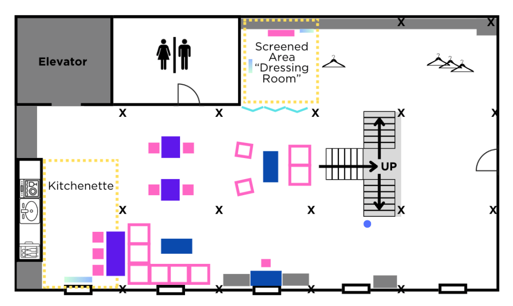 The below floor plans are meticulously designed to be as close to scale as possible, ensuring an accurate representation of our space. With every private event rental, a floor plan consultation is included. Our venue coordinator will provide valuable feedback on your proposed layout, helping you make the most of our venue’s features. Additionally, if you desire a more customized approach, for an additional fee you can opt for our coordinators to design your floor plan, tailoring it to your specific vision and needs.