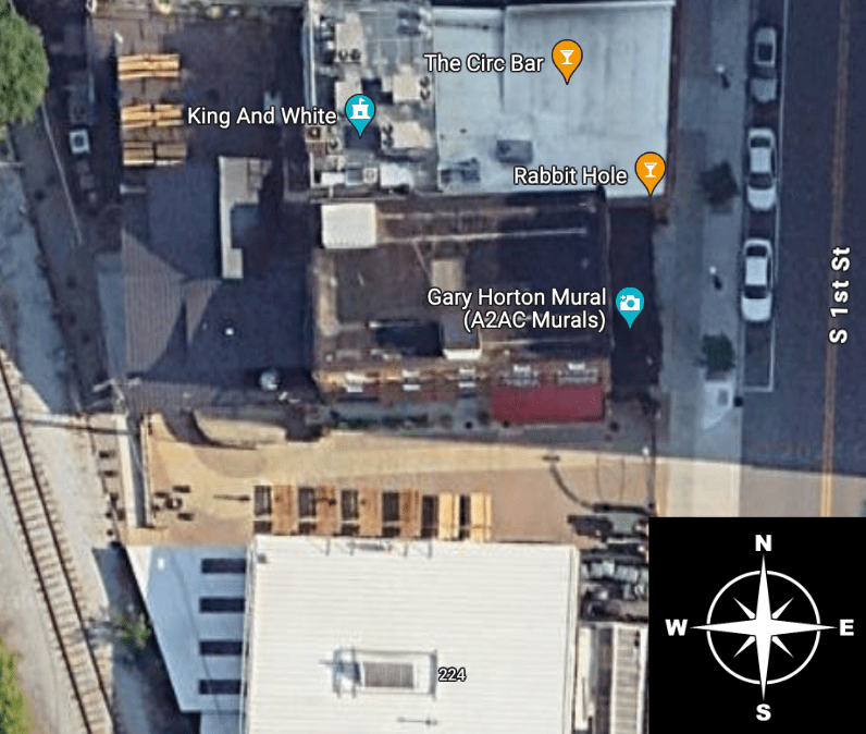 The building faces South 1st Street to the East. There is a loading zone right out front for temporary parking and additional parking lots nearby. See here for a parking map.